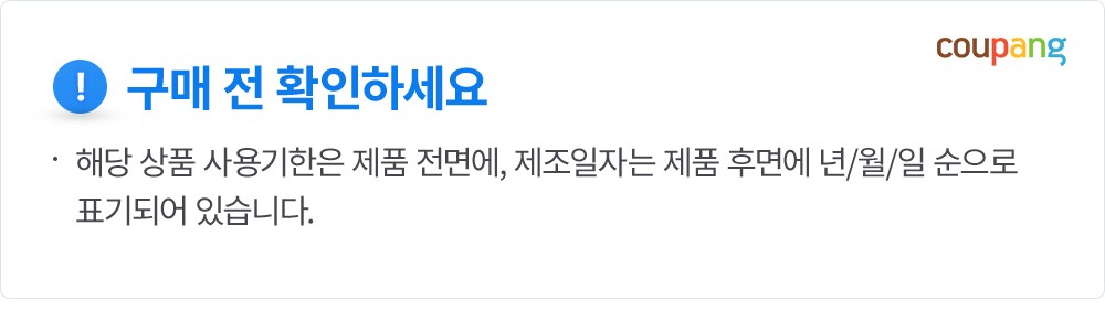 | 교환/반품 신청 기준일 | ㆍ단순변심에 의한 로켓배송 상품의 교환/반품은 제품 수령 후 30일 이내까지, 교환/반품 제한사항에 해당하지 않는 경우에만 가능 (교환/반품 비용 고객부담) ㆍ상품의 내용이 표시·광고의 내용과 다른 경우에는 상품을 수령한 날부터 3개월 이내, 그 사실을 안 날 또는 알 수 있었던 날부터 |