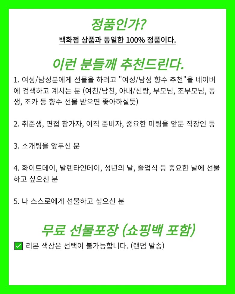 - ㆍ모니터 해상도의 차이로 인해 색상이나 이미지가 실제와 달라, 고객이 단순 변심으로 교환/반품을 무료로 요청하는 경우