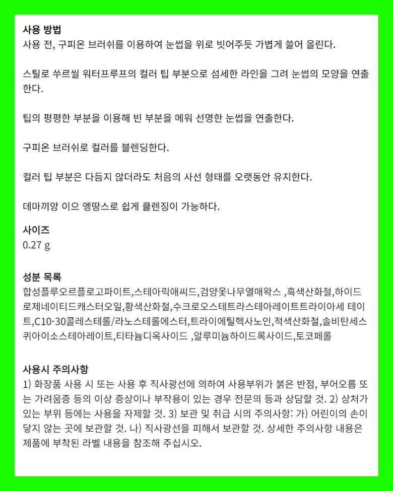 | 사용기한 또는 개봉 후 사용기간 | 상품 상세페이지 참조 | 사용방법 | 상품 상세페이지 참조 |