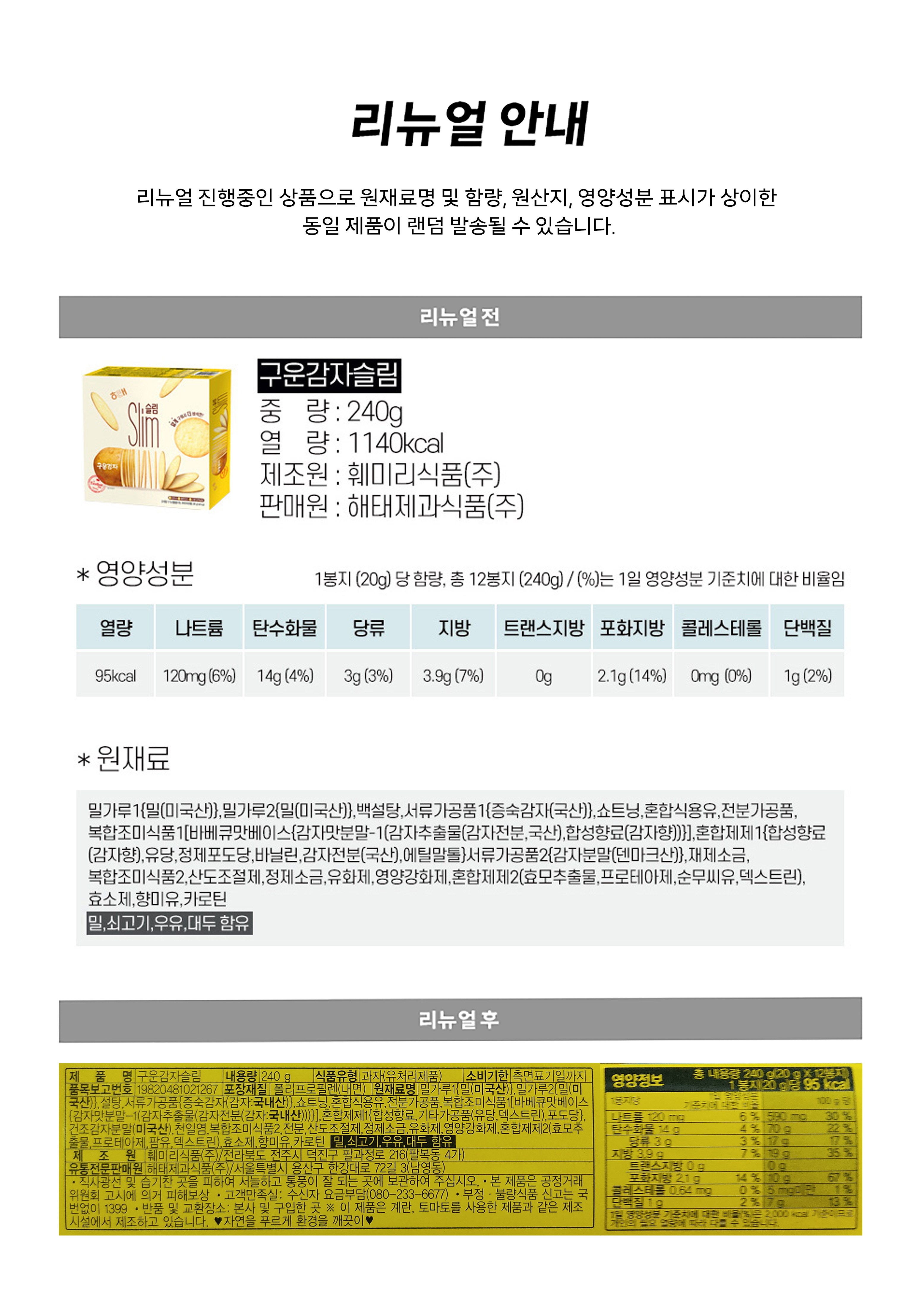 | 제품명 | 구운감자슬림 | 식품의 유형 | 과자 (유처리제품) |
