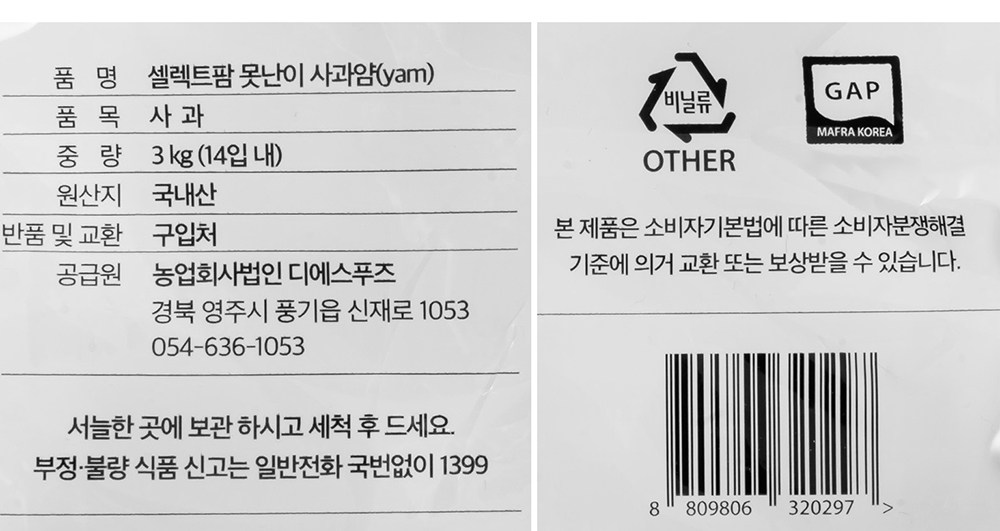 셀렉트팜 못난이 사과얌