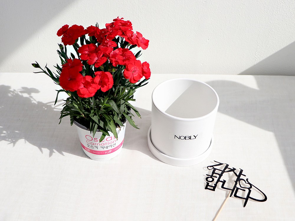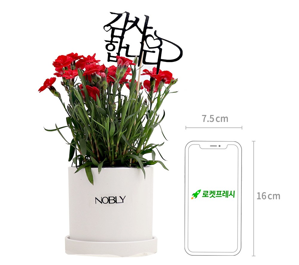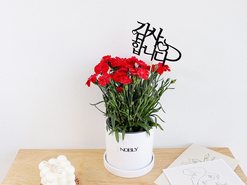 소중한 분께 진심을 전하기 좋은 꽃이에요. 스프레이카네이션의 화사한 빨간색이 눈길을 사로잡지요. 화이트 색상의 화분과 감사합니다 픽이 동봉되어 있어 선물용으로 제격이랍니다. 아름다운 꽃에 감사와 사랑의 마음을 담아보세요.