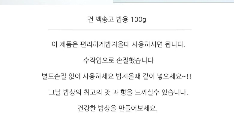 | 배송방법 | 순차배송 | 배송비 | 3,500원 - 50,000원 이상 구매 시 무료배송 - 도서산간 지역 배송불가 |