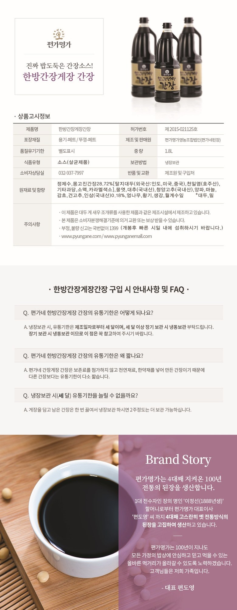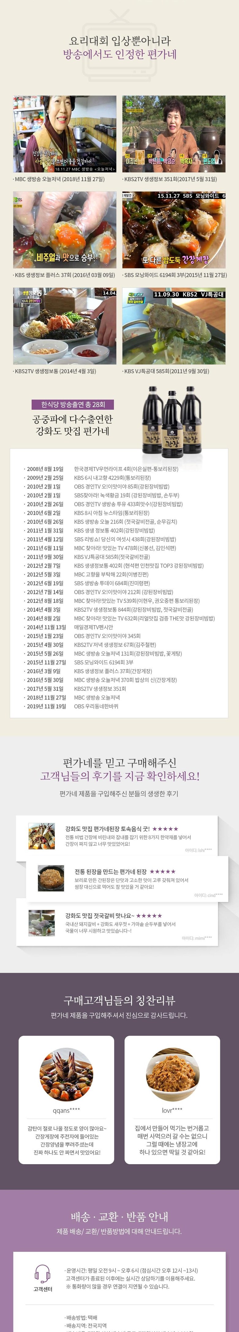 | 생산자 및 소재지 | 편가명가영농조합법인(편가네된장) / 인천 강화군 화도면 가능포로89 | 제조연월일, 소비기한 또는 품질유지기한 | 상품 상세페이지 참조 |