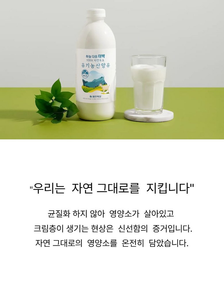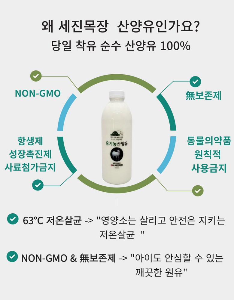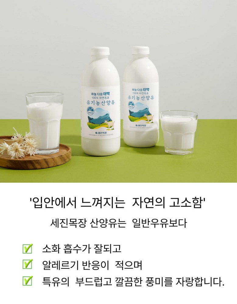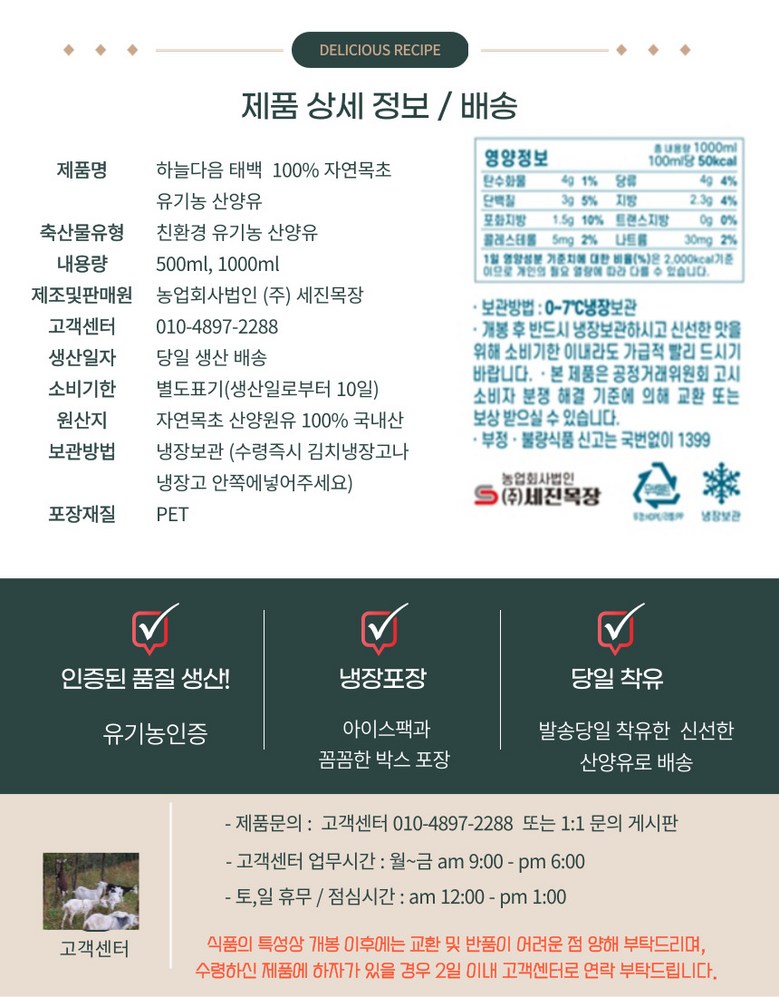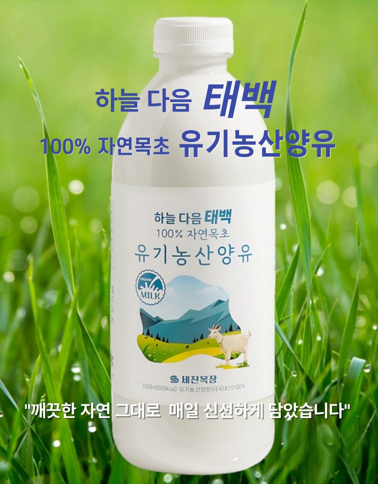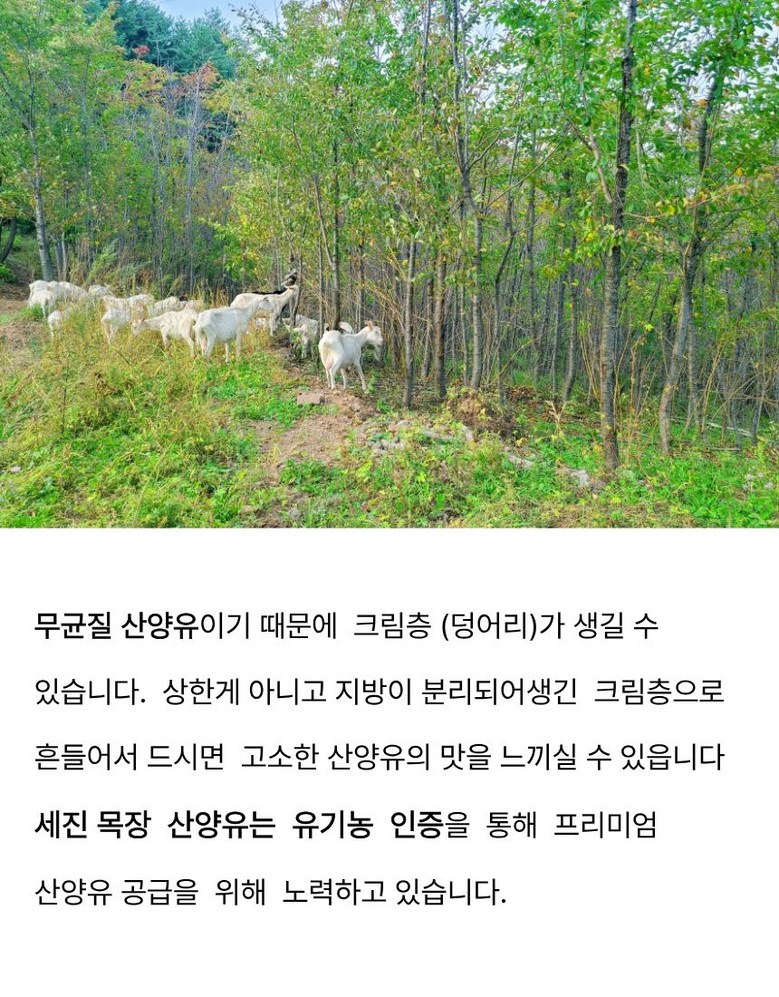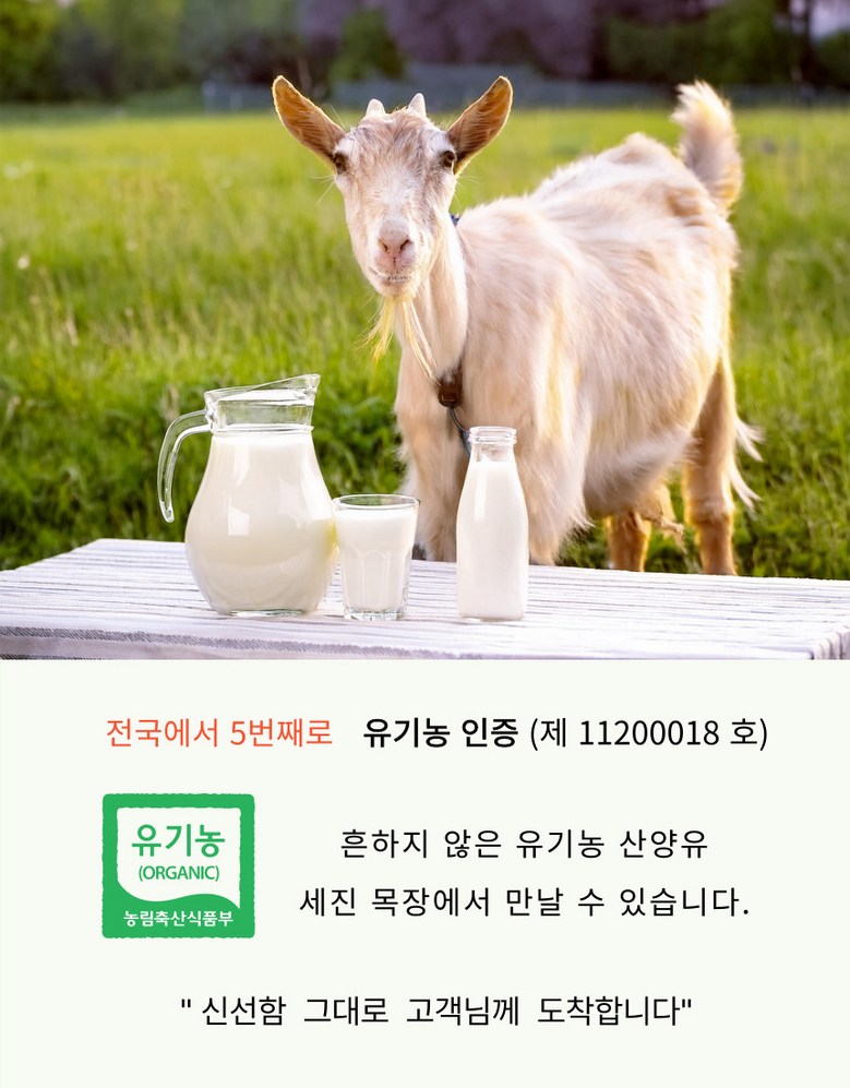 | 품목 또는 명칭 | 세진목장 유기농 산양유 | 포장단위별 내용물의 용량(중량),수량,크기 | 1000ml*2개 |