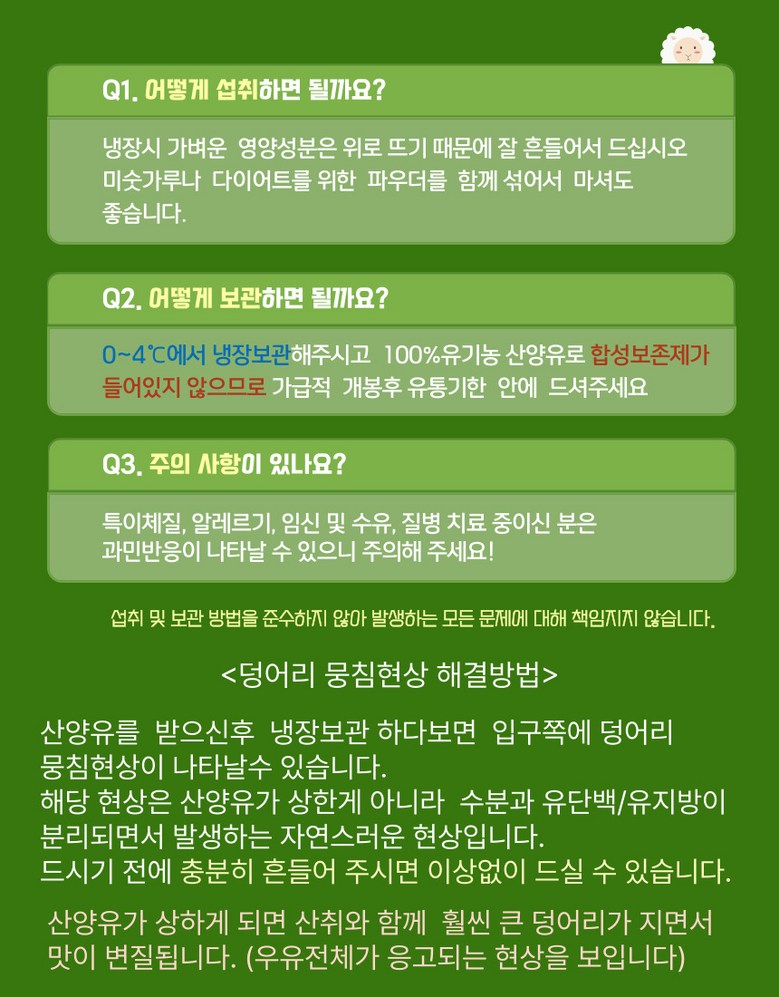 | 생산자(수입자) | 농업회사법인 주식회사 세진목장 | 원산지 | 대한민국 |