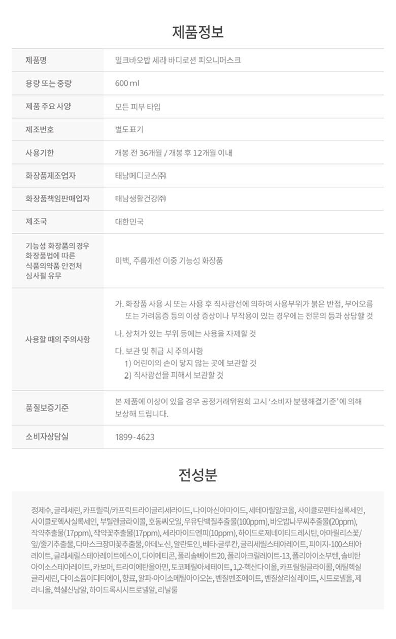 | 용량(중량) | 600ml | 제품 주요 사양 | 모든 피부용 |