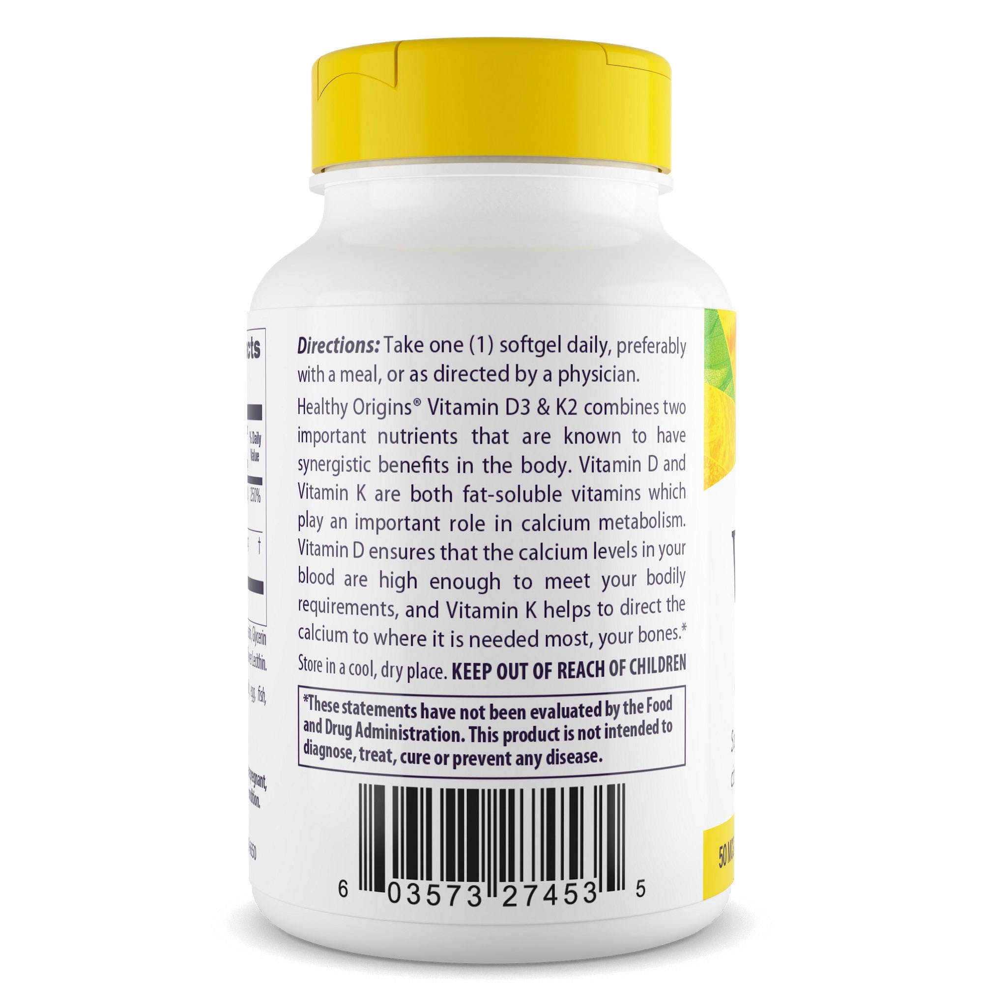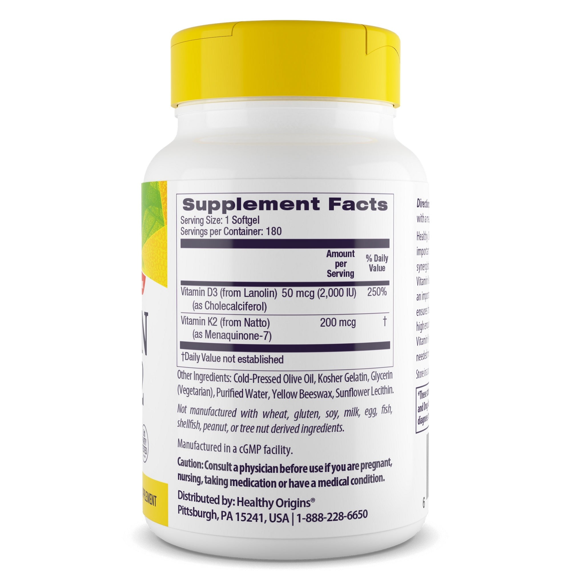 비타민 D3 50mcg와 비타민 K2 200mcg가 함유된 식이 보충제입니다.