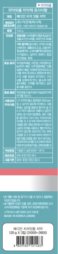| 품명 및 모델명 | 메디안 치석 잇몸 치약 | 인증/허가 사항 | 의약외품 |