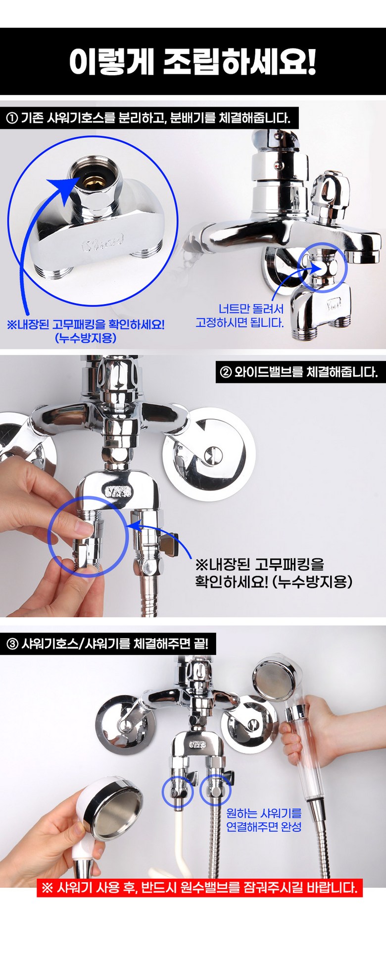 | 제조국(원산지) | 두갈래아답터:국산 / 미니밸브:중국산 | 제조자(수입자) | 상품 상세페이지 참조 |