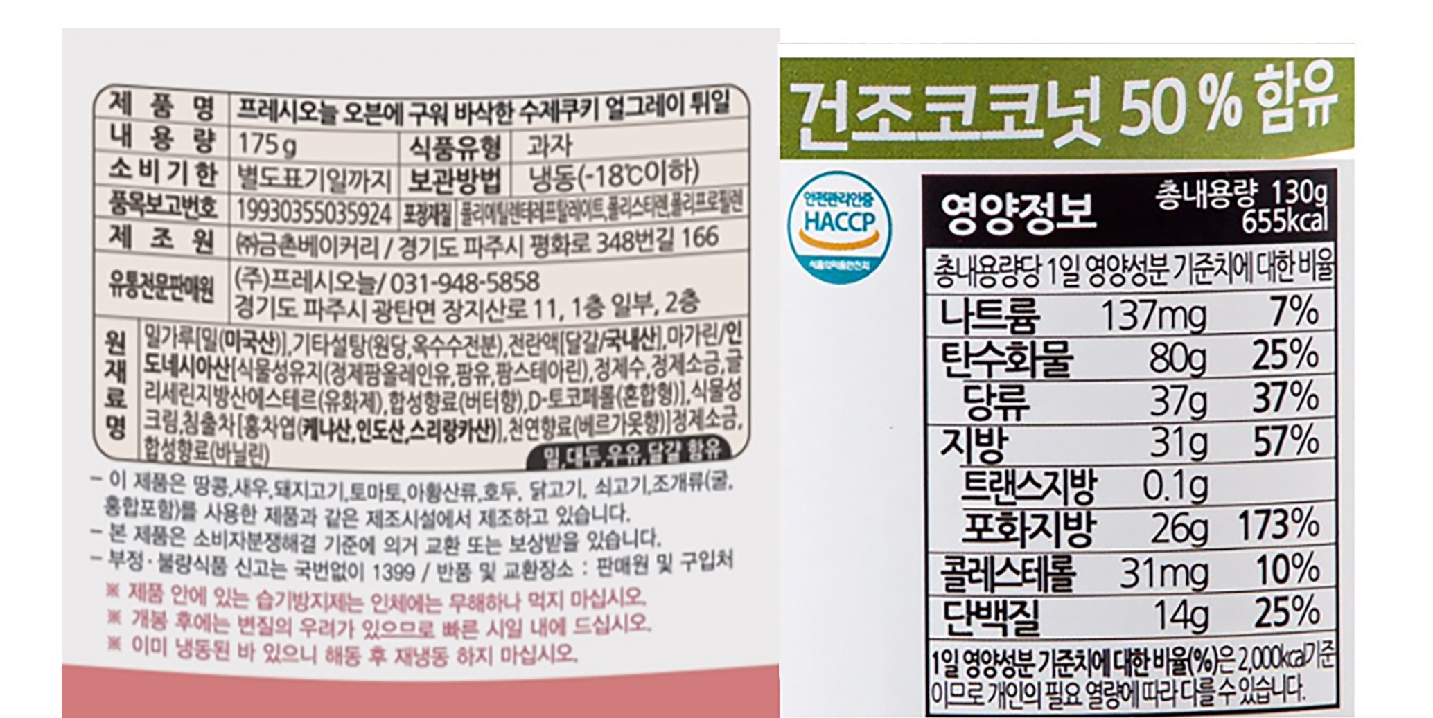 | 생산자 및 소재지 | 컨텐츠 참조 | 제조연월일, 소비기한 또는 품질유지기한 | 소비기한(또는 유통기한) : 2026년 04월 29일 이거나 그 이후인 상품 제조년월일 : 2025년 11월 01일 이후인 제조상품 |