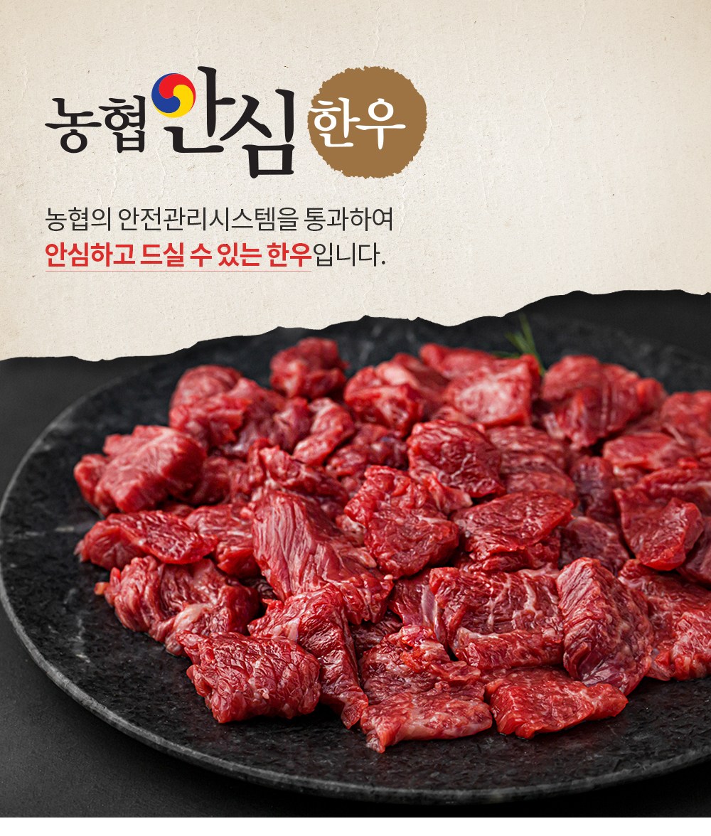 1++등급 한우를 먹기 좋은 크기로 정형했어요. 탄탄하고 촘촘한 육질의 쫄깃쫄깃한 식감이 매력적이지요. 푹 끓이면 살코기가 연해져 국거리로 활용하기 좋답니다. 뭇국, 미역국 등에 넣어 고소한 감칠맛을 즐겨보세요.