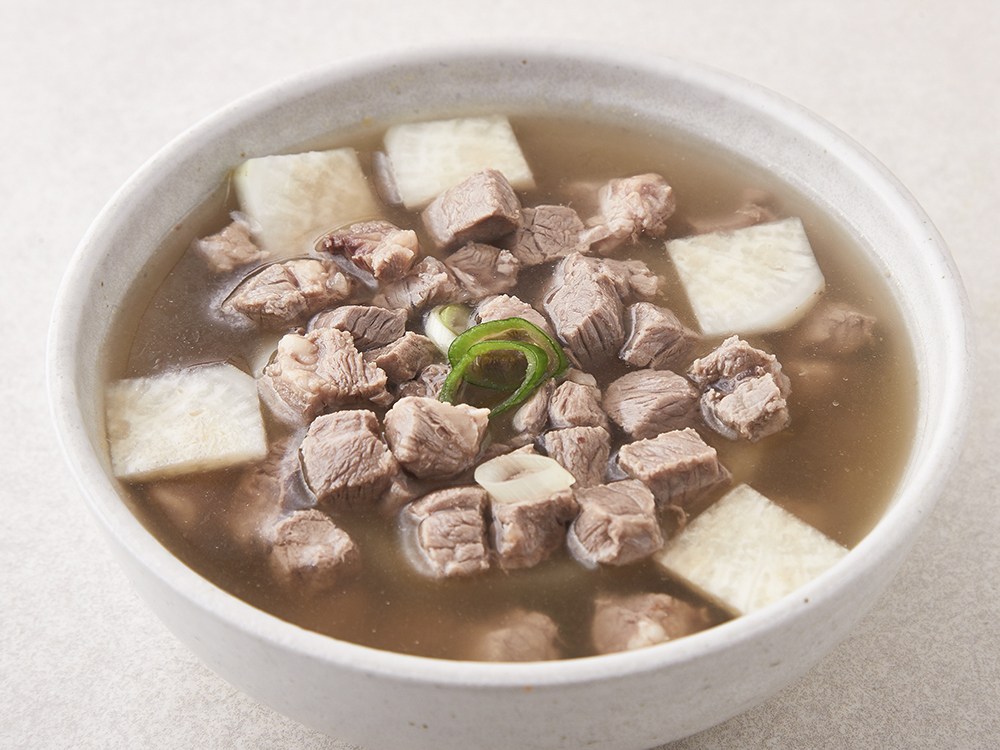 재료: 소고기 100g, 무 1/4개, 대파 약간, 국간장, 소금, 후추, 참기름