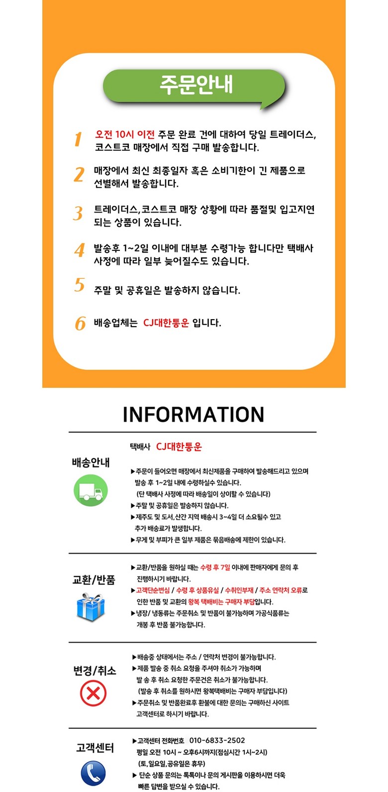 | 교환/반품 비용 (왕복비용) | 6,000원 - 단, 고객 변심의 경우에만 발생 - 도서산간 및 일부 지역 추가비용 발생 |