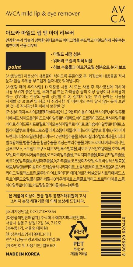 | 화장품제조업자, 화장품책임판매업자 및 맞춤형화장품판매업자 | 컨텐츠 참조 | 제조국 | 대한민국 |