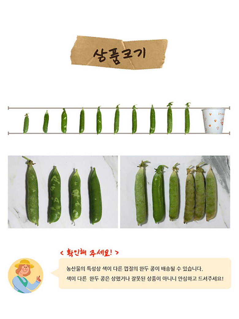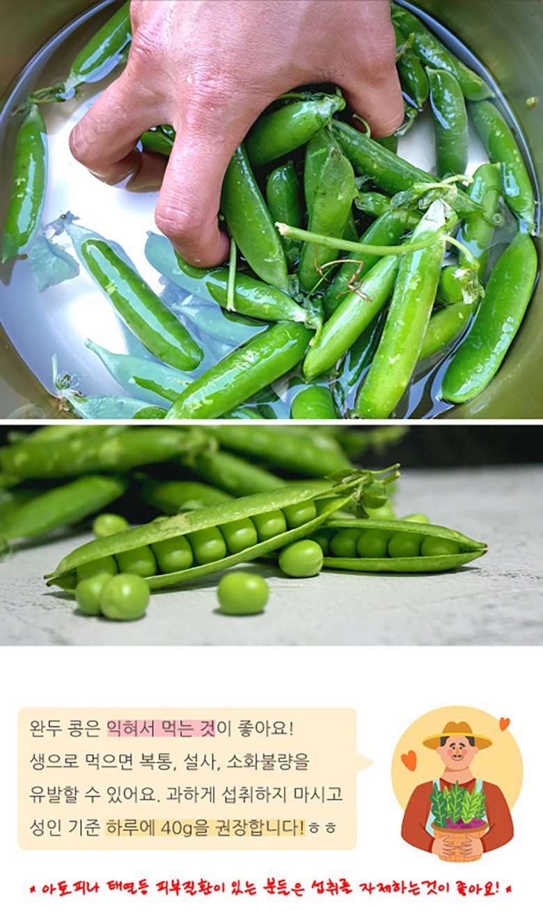| 품목 또는 명칭 | 껍질완두콩 | 포장단위별 내용물의 용량(중량),수량,크기 | 1kg 2kg 4kg |