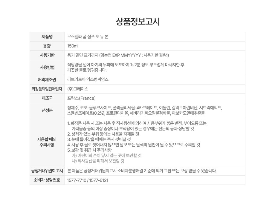 | 화장품제조업자, 화장품책임판매업자 및 맞춤형화장품판매업자 | 컨텐츠참조 | 제조국 | 프랑스 |