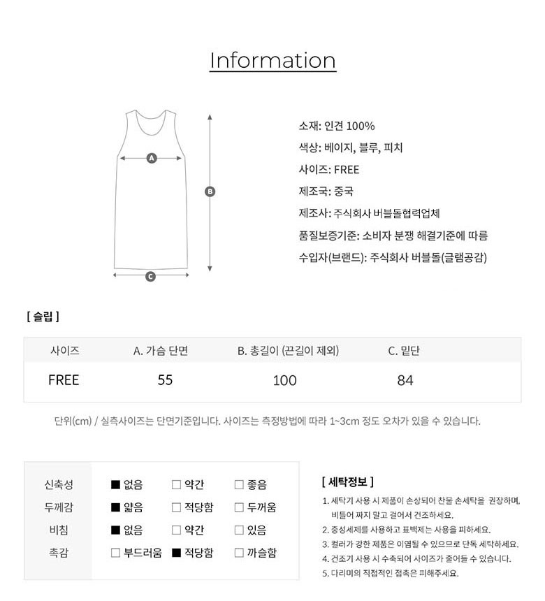 | 제조국 | 중국 | 세탁방법 및 취급시 주의사항 | 컨텐츠 참조 |