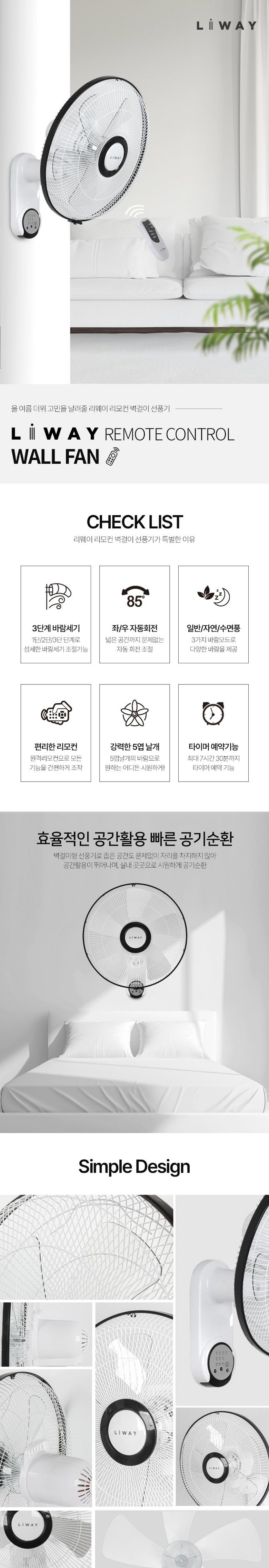 | 품명 및 모델명 | 선풍기 / 리웨이 데일리 리모컨 벽걸이 선풍기 | KC 인증정보 | 상품 상세페이지 참조 |