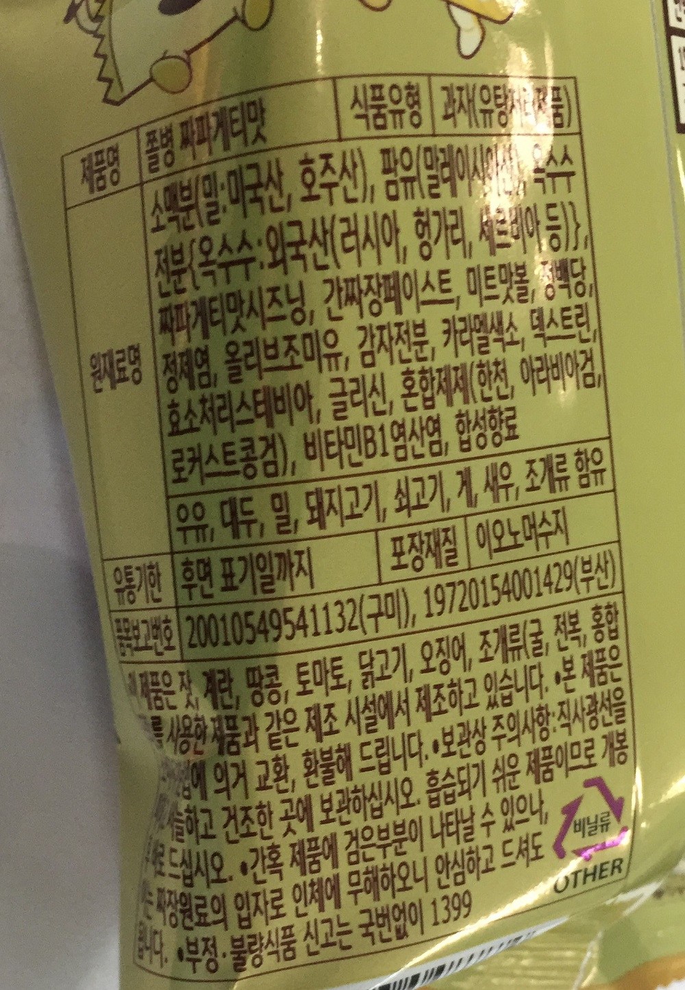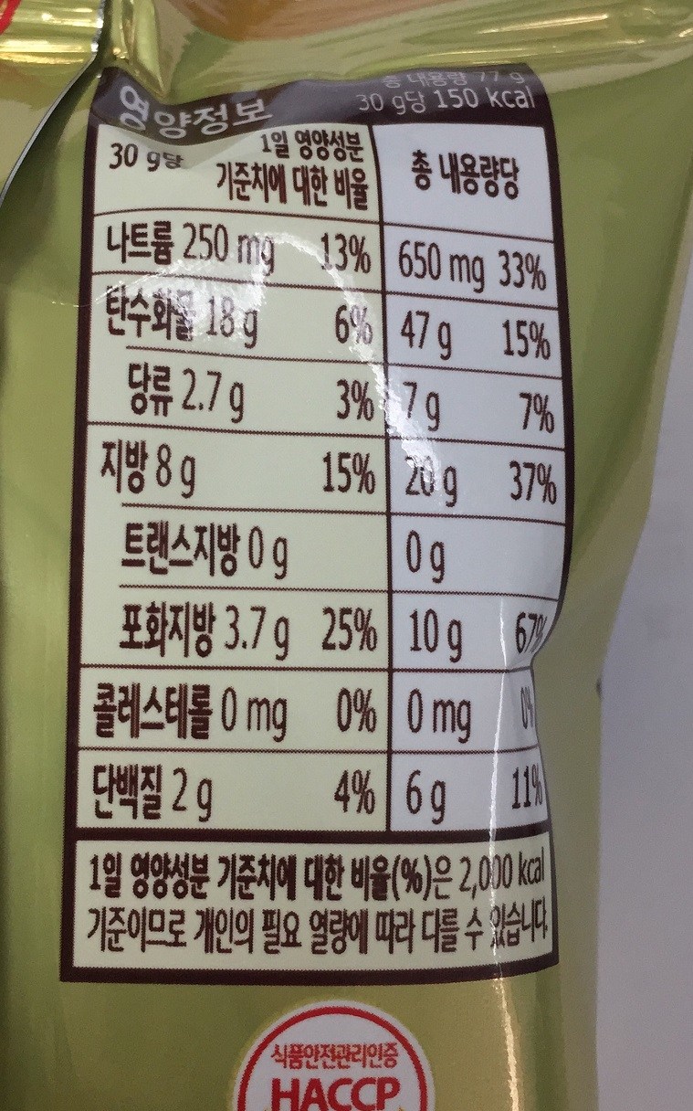 - 과자 맛: 짭짤한맛