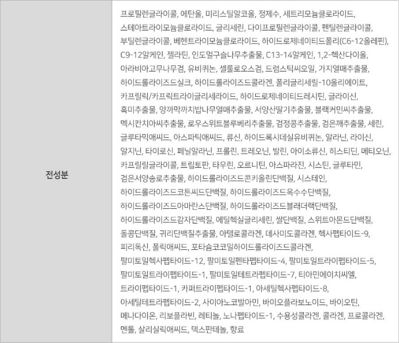 | 화장품제조업자, 화장품책임판매업자 및 맞춤형화장품판매업자 | 상품 상세페이지 참조 | 제조국 | 상품 상세페이지 참조 |