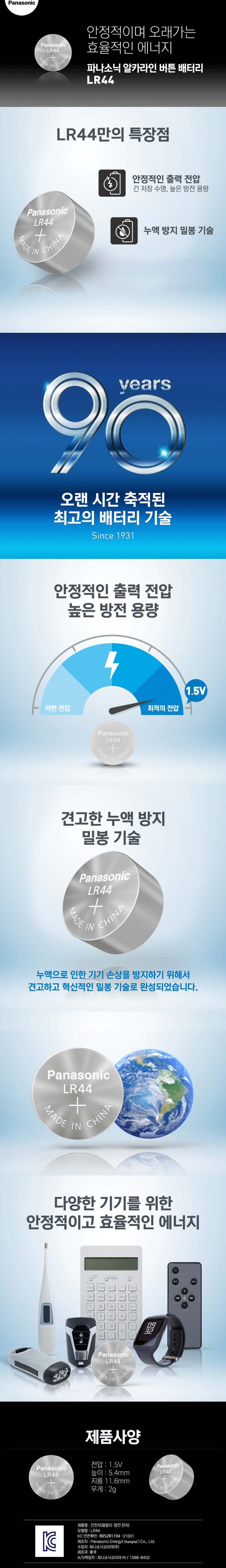 | 품명 및 모델명 | 파나소닉 알카라인 건전지 / LR44 | 인증/허가 사항 | B052R1194-21001 |