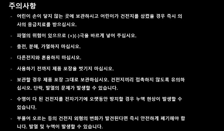 | 제조국(원산지) | 중국 | 제조자(수입자) | Panasonic Energy (Shanghai) Co., Ltd / 파나소닉코리아주식회사 |