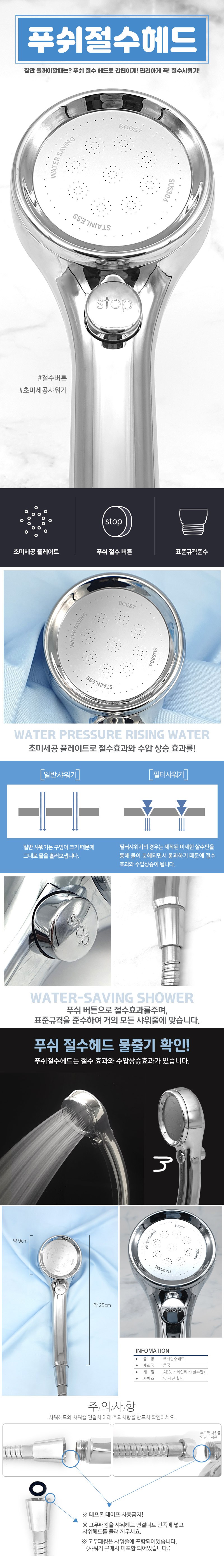 온오프 푸쉬 절수 샤워기 헤드