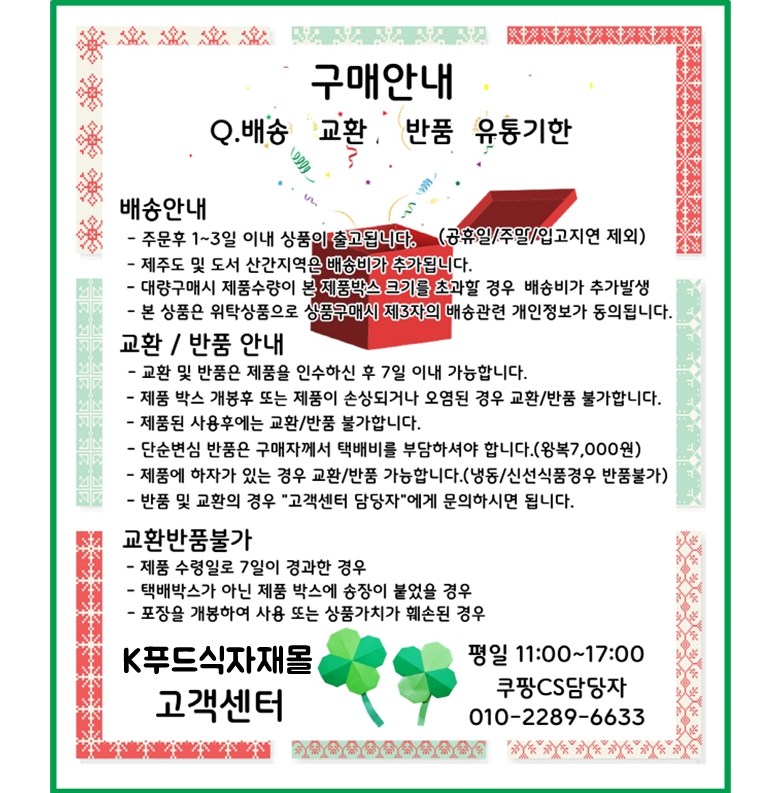 | 제품명 | 상품 상세페이지 참조 | 식품의 유형 | 상품 상세페이지 참조 |