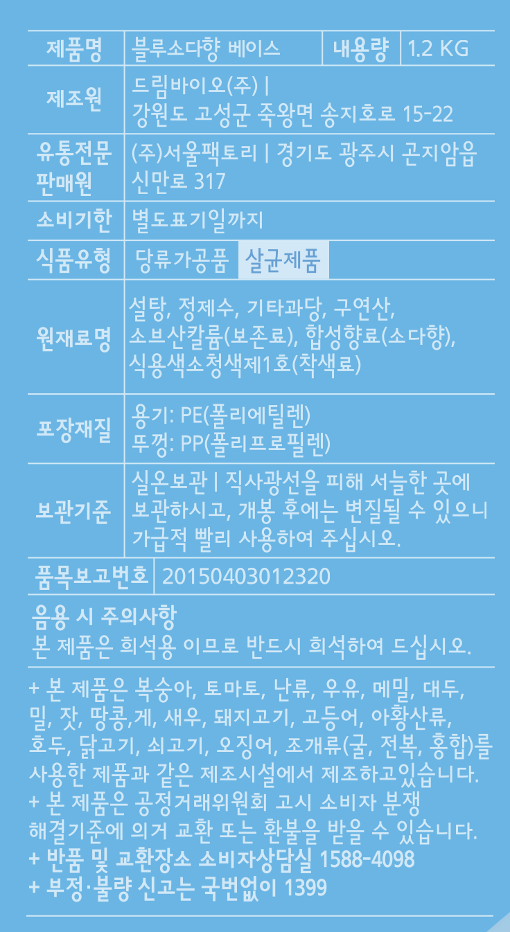 | 제품명 | 컨텐츠 참조 | 식품의 유형 | 컨텐츠 참조 |