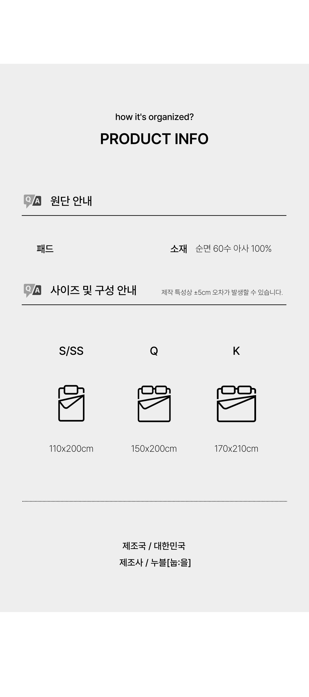 - 겉감재질: 순면