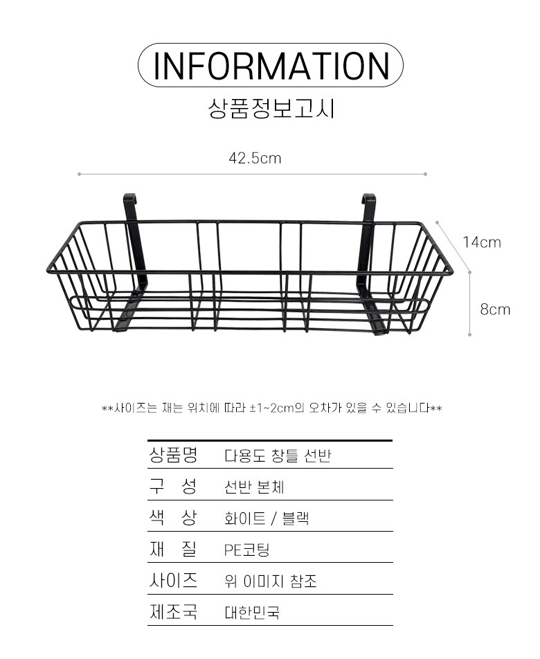 | 품명 및 모델명 | 다용도 창틀 선반 | 인증/허가 사항 | 해당 없음 |