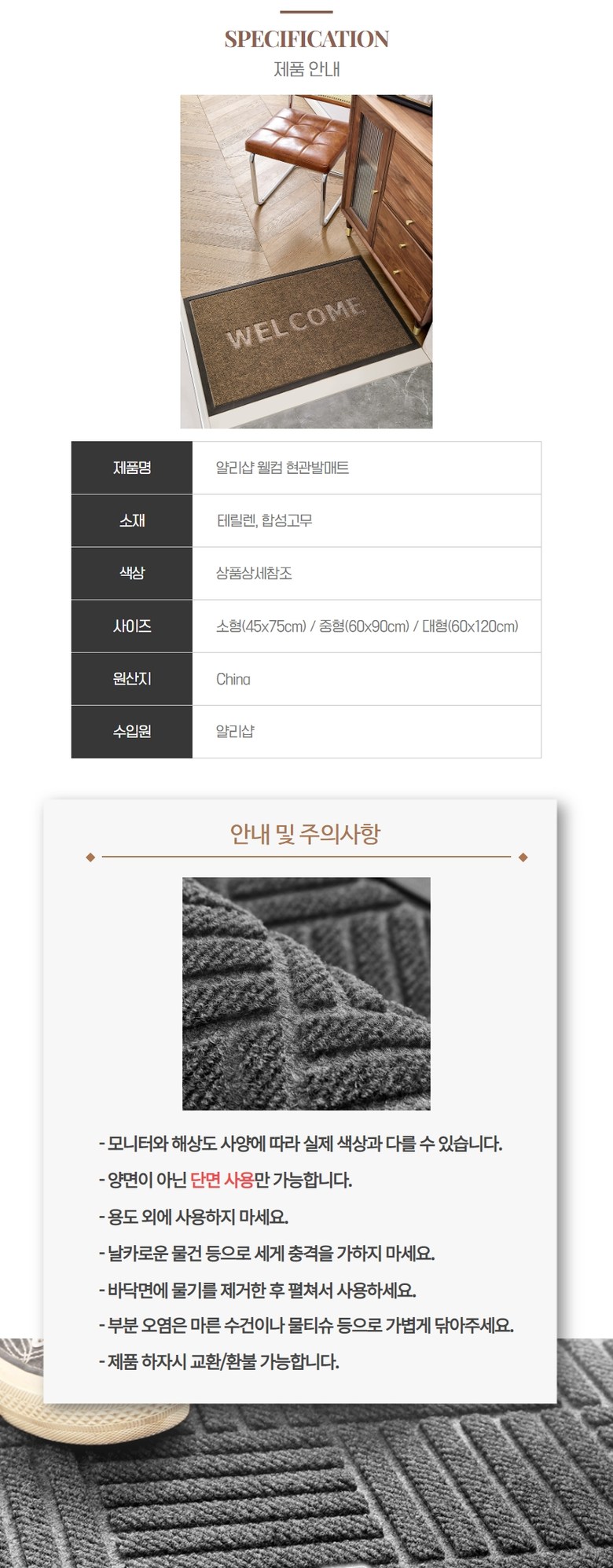 - ㆍ모니터 해상도의 차이로 인해 색상이나 이미지가 실제와 달라, 고객이 단순 변심으로 교환/반품을 무료로 요청하는 경우