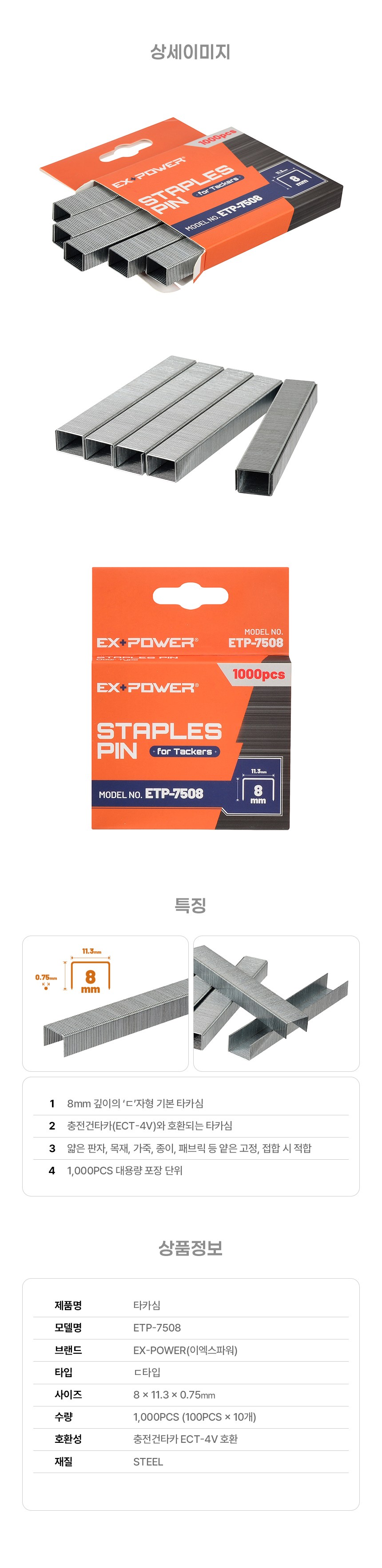 이엑스파워 타카핀 ETP-7508 0.75 x 8 mm 1000p, 1개
