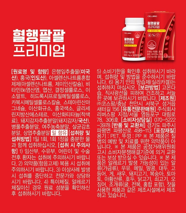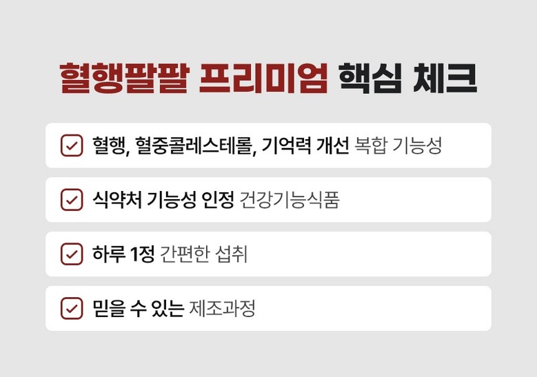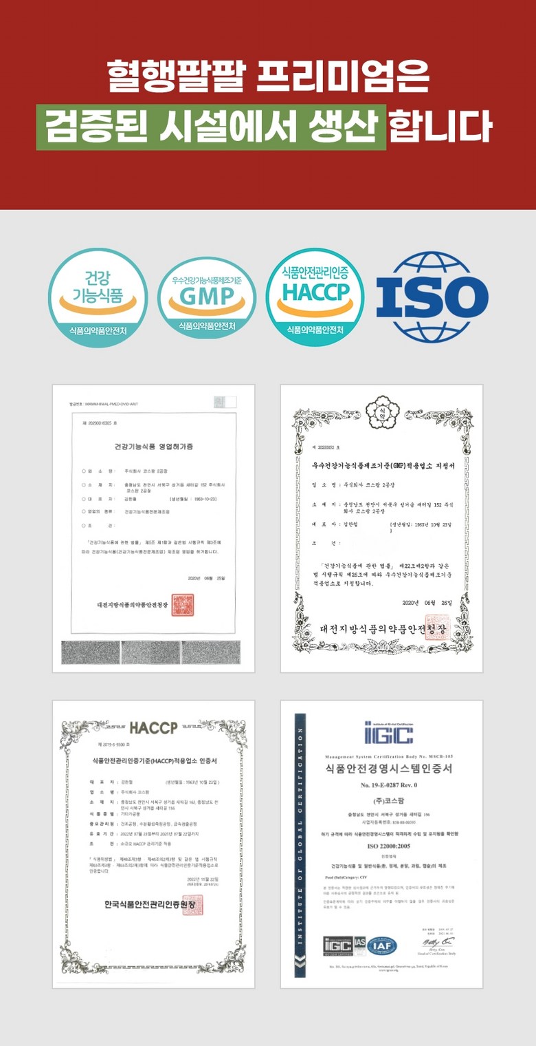 | 제품명 | 혈행팔팔 프리미엄 | 제조업소의 명칭과 소재지 | 상품 상세페이지 참조 |
