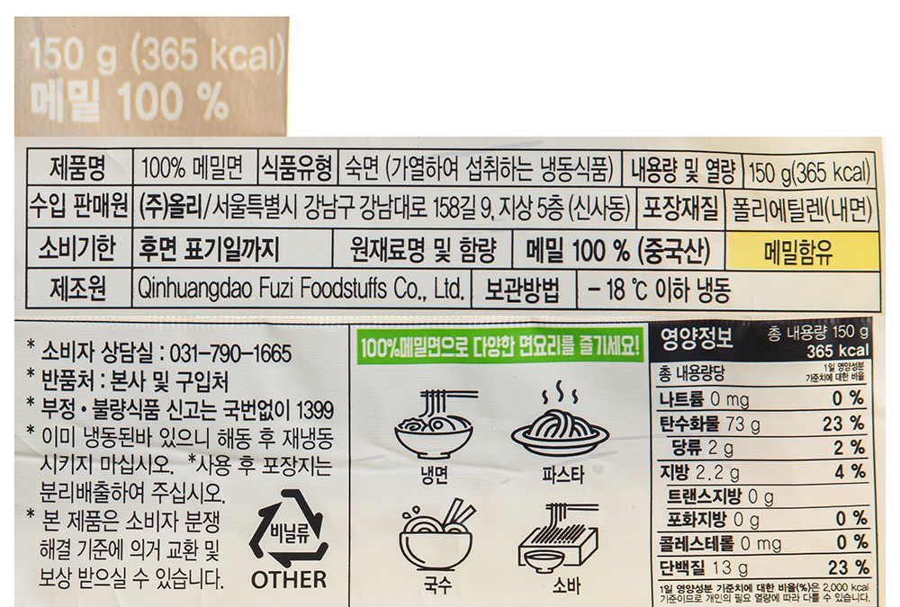 특유의 탱글탱글하고 쫄깃한 식감과 구수한 향을 즐길 수 있는 메밀면입니다. 냉면, 파스타, 국수, 소바 등 어떠한 면 요리에도 활용하기 좋아요. 면 요리를 좋아하신다면 향긋한 메밀면으로 맛있는 요리를 만들어보세요.