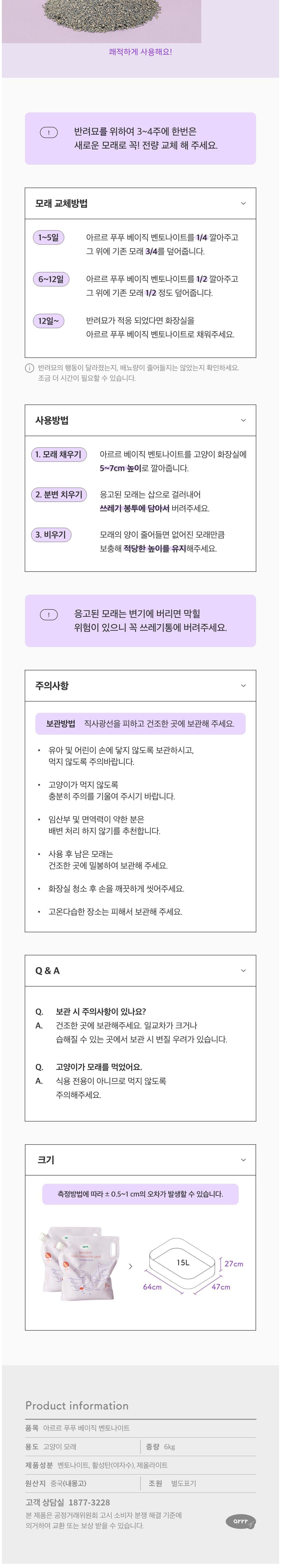 | 품명 및 모델명 | 아르르 푸푸 베이직 벤토나이트 | 인증/허가 사항 | 해당없음 |