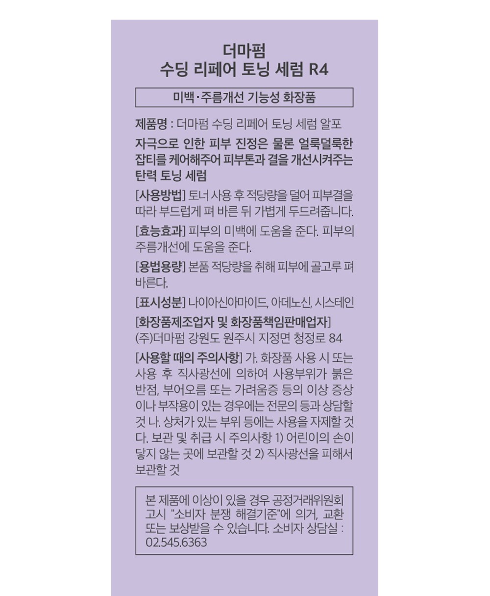 | 용량(중량) | 30m | 제품 주요 사양 | 모든 피부용 |