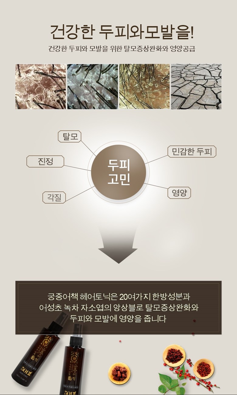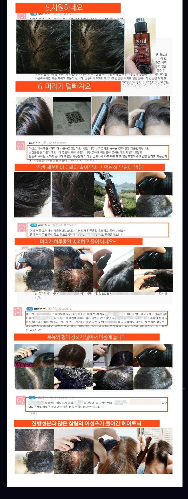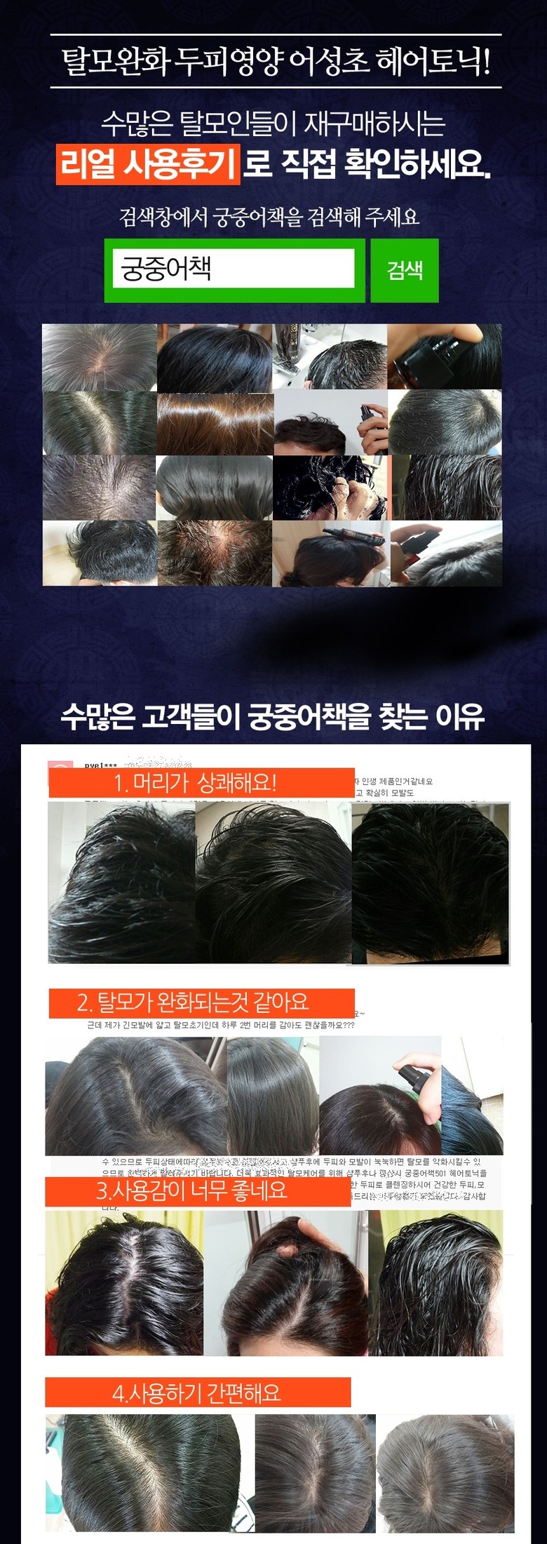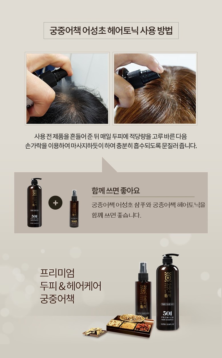 | 사용기한 또는 개봉 후 사용기간 | 상세페이지 참조 | 사용방법 | 사용전 제품을 충분히 흔들어준 뒤 매일 두피에 적당량을 고루 바른 다음 손가락을 이용하여 마사지하듯이 충분히 흡수되도록 문질러 줍니다. |