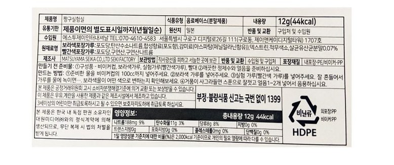 | 생산자 및 소재지 | 상품 상세페이지 참조 | 제조연월일, 소비기한 또는 품질유지기한 | 상품 상세페이지 참조 |
