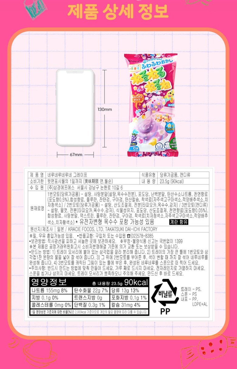 | 제품명 | 상품 상세페이지 참조 | 식품의 유형 | 상품 상세페이지 참조 |