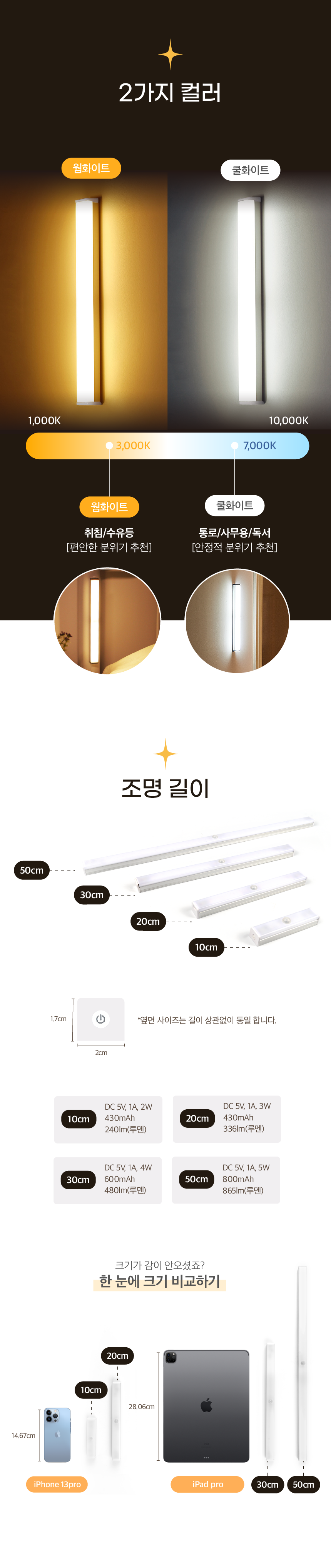 색상 × 수량: 웜화이트 × 1개