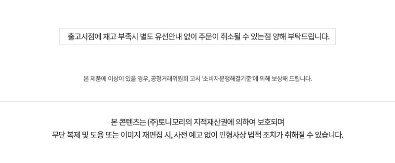 - ㆍ교환/반품에 관한 일반적인 사항은 판매자가 제시사항보다 관계법령이 우선합니다.
