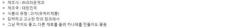 - 과자 종류: 과자/쿠키/비스킷