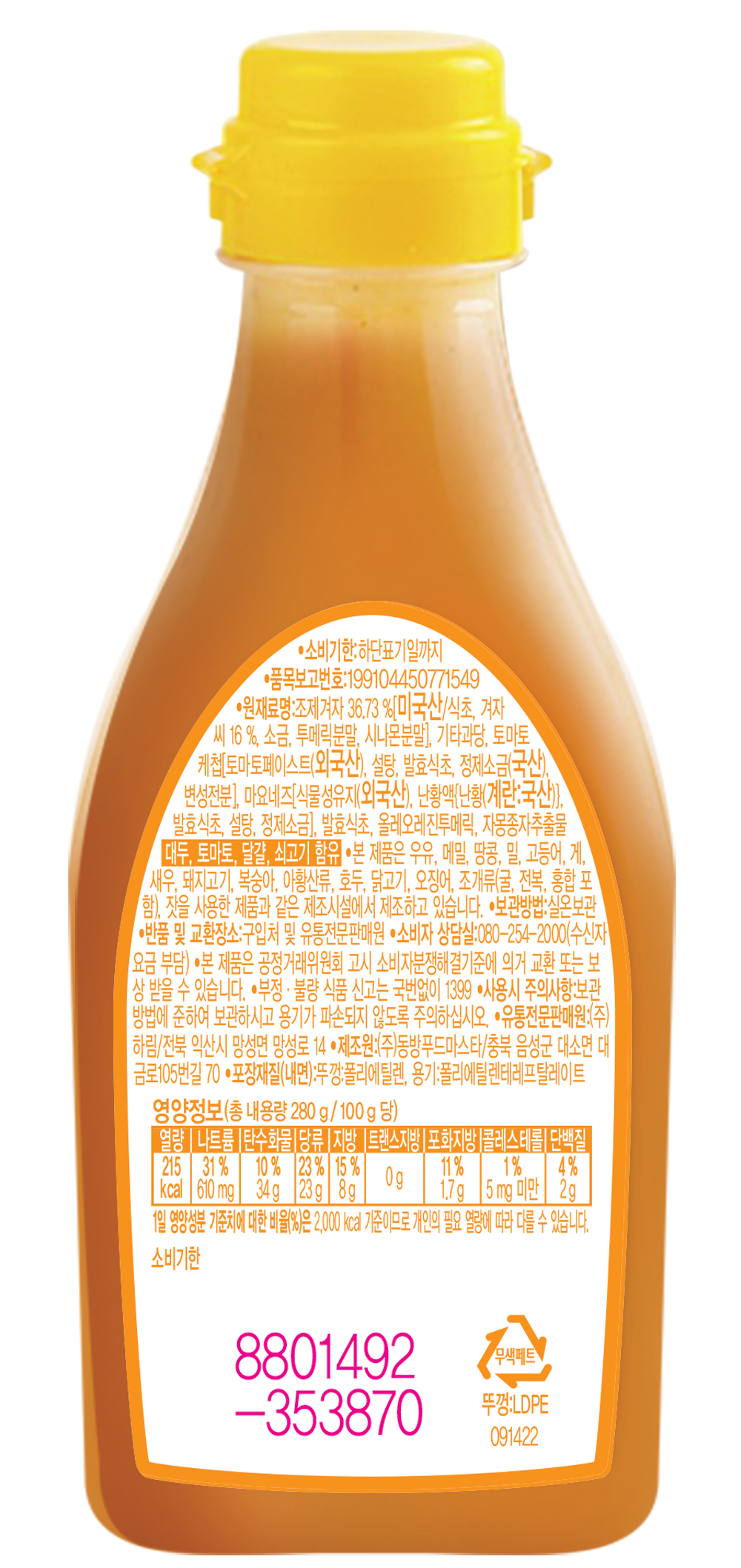| 제품명 | 하림뉴머스타드소스 | 식품의 유형 | 소스 |