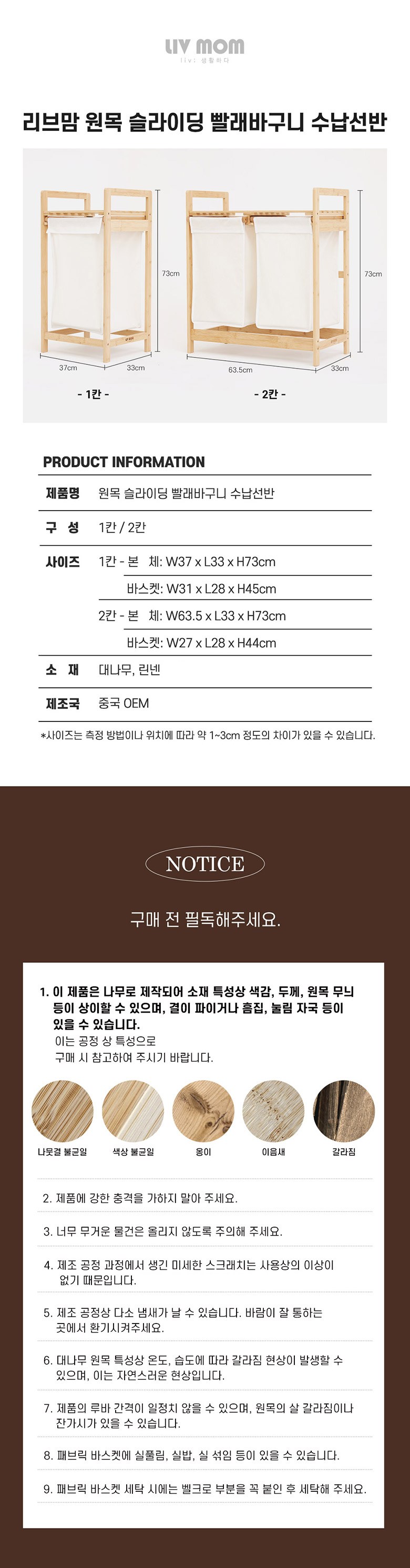 | 품명 및 모델명 | 리브맘 원목 수납선반 슬라이딩 빨래 바구니 | 인증/허가 사항 | 해당없음 |