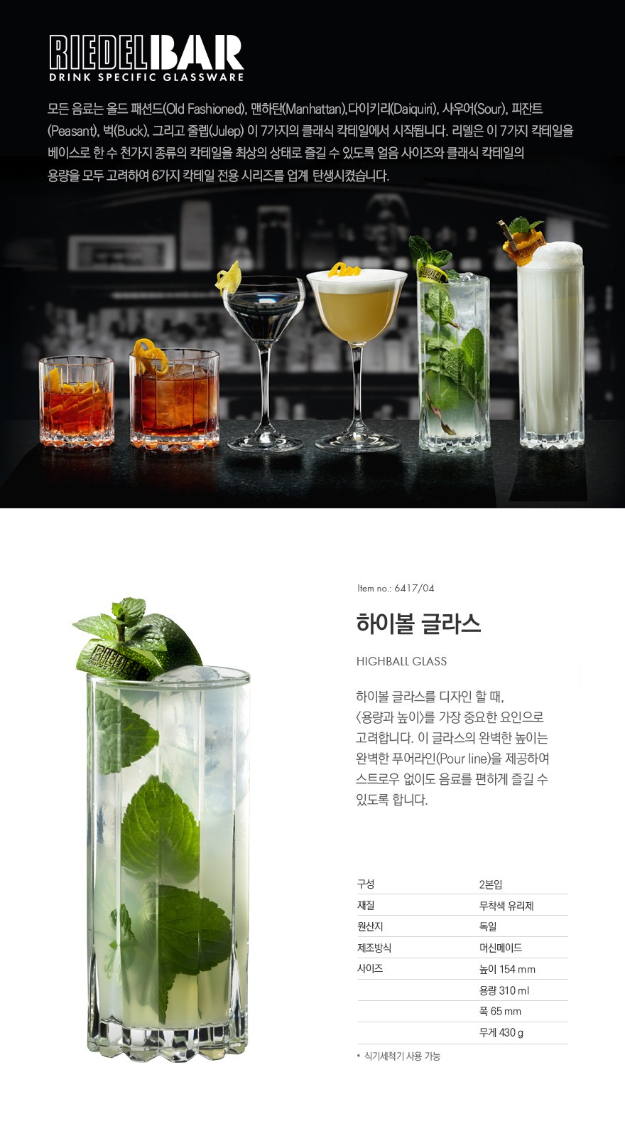 | 품명 및 모델명 | 리델 바웨어 하이볼 글라스 6417/04 | 재질 | 컨텐츠 참조 |