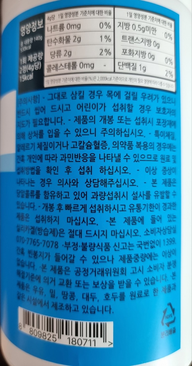 - 건강식품 타입: 캡슐