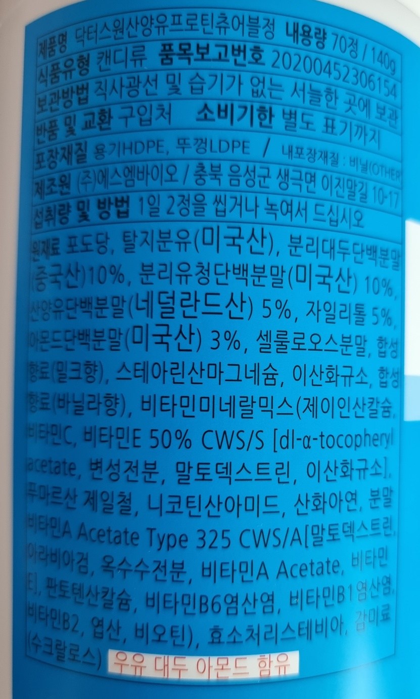 - 단백질 형태: 츄어블