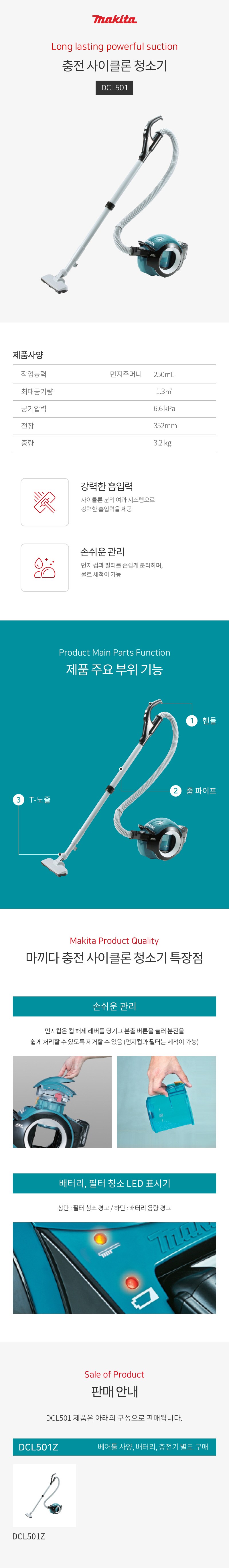 | 품명 및 모델명 | 마끼다 18V BL 충전 싸이클론 진공청소기/DCL501 | KC 인증정보 | MSIP-REM-MaK-DCL501 |
